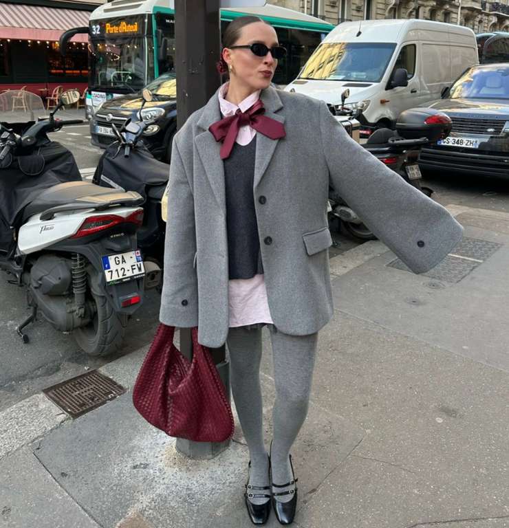 Самая универсальная формула. Белая сорочка, слегка расстегнутый верх, узкий галстук, завязанный без фанатизма — и поверх мужской жакет или длинное пальто. «Такой образ выглядит одновременно строго и расслабленно, особенно если пиджак немного велик. Эффект — как у героини французского кино, у которой собственное мнение и отличное чувство стиля», — утверждает эксперт.