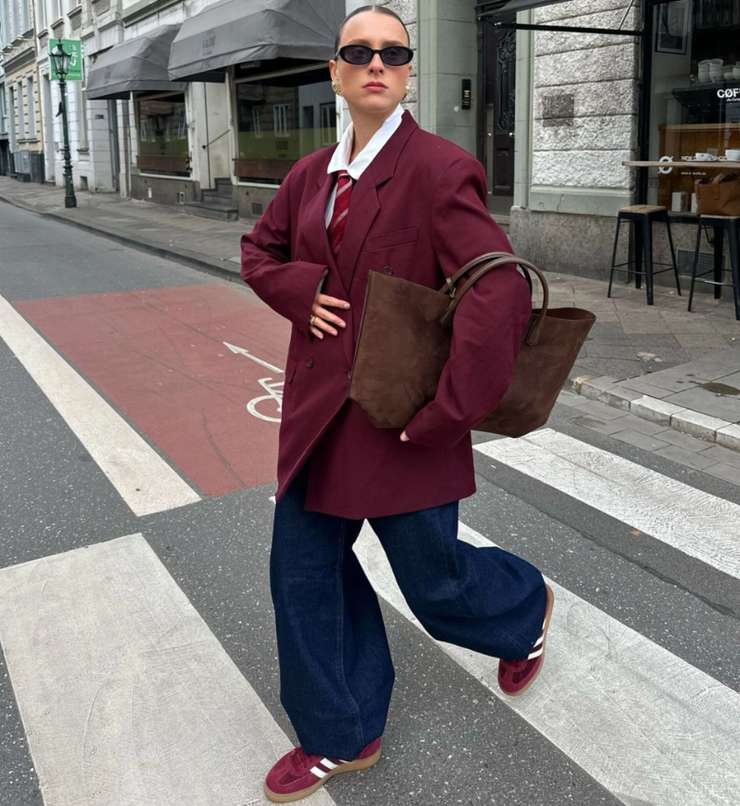 Если хочется легкости и современного уличного вайба — сочетайте рубашку и галстук с прямыми джинсами, кроссовками и короткой курткой или пуховиком. «Контраст формальности и спорта делает образ острым и живым: будто вы только что вышли из офиса и направились на выставку современного искусства. Работает и с бейсболкой нейтрального цвета или шерстяной шапкой-бинни — они добавят иронии, не споря с галстуком», — говорит стилист.