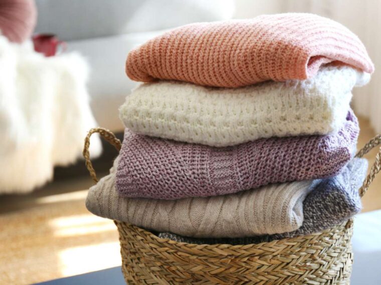 На лето шерсть и кашемир нужно убирать в тканевые чехлы или коробки, пропускающие воздух. Перед хранением вещи обязательно очищают и полностью высушивают — моль любит именно загрязненные волокна. Положите внутрь кедровые бруски, лаванду или другие натуральные репелленты. И никогда не храните любимый кардиган на вешалке — от этого вытягиваются плечи.
