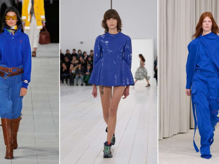 «Главное — не превращать все в диско-шар: одного металлического акцента достаточно, чтобы синий зазвучал ярче и современнее. Еще один работающий ход — прозрачные элементы: стеклянные кабошоны в украшениях, сумки с глянцевой вставкой, очки с кристально чистыми линзами. Такой „стеклянный“ блеск добавляет синему глубину, не споря с цветом», — утверждает стилист.