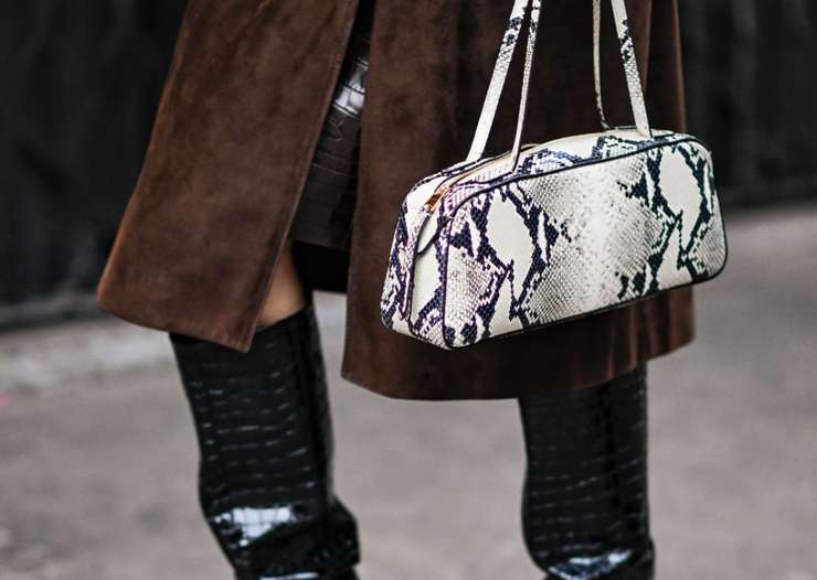 Змеиный принт уже сам по себе заметен, поэтому обувь и сумка работают как рамка. К сапогам под рептилию берите сумку без активного декора и логотипов. К юбке или платью со змеиным узором идеально идут ботильоны из замши или гладкой кожи однотонного теплого оттенка. К джинсам и нейтральному верху добавьте одно акцентное звено. Лоферы со змеиным тиснением или маленькую сумку на плечо. В холодные дни хорошо смотрятся перчатки из мягкой кожи и ремень в цвет обуви, так комплект выглядит более цельным.