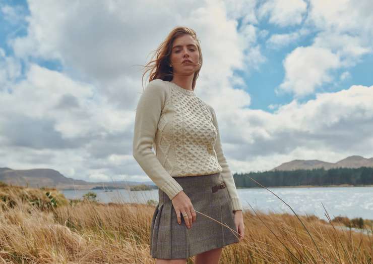 Аран — это вид рельефной вязки с характерными «косами», сотами и ромбами. Название пришло с островов Аран у берегов Ирландии, где такие свитеры из толстой овечьей шерсти носили рыбаки. Узоры делали не только ради красоты. Объемная вязка удерживает воздух и лучше греет, а натуральная шерсть с ланолином отталкивала влагу. Фактура дает объем и сразу тянет внимание на первый план. Пусть все вокруг в этом случае будет гладким и простым. Отличная пара — шелковая юбка миди и высокие сапоги, либо строгие черные брюки и балетки. Кстати, актуальный в этом сезоне молочный аран красиво смотрится в светлом тотал-луке. Если нужен акцент, берите темно-вишневую помаду или кожаный ремень коньячного оттенка.