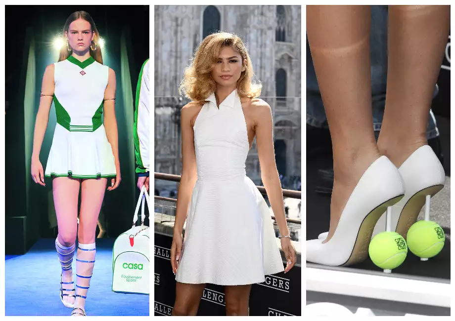 Сегодня все вновь заговорили о теннисе благодаря мелодраме «Претенденты» с Зендеей в главной роли. В промотуре актриса носила туфли Loewe с теннисными мячиками вместо шпильки и высокую тугую косу с белой лентой — оммаж знаковому образу теннисистки Анны Курниковой.