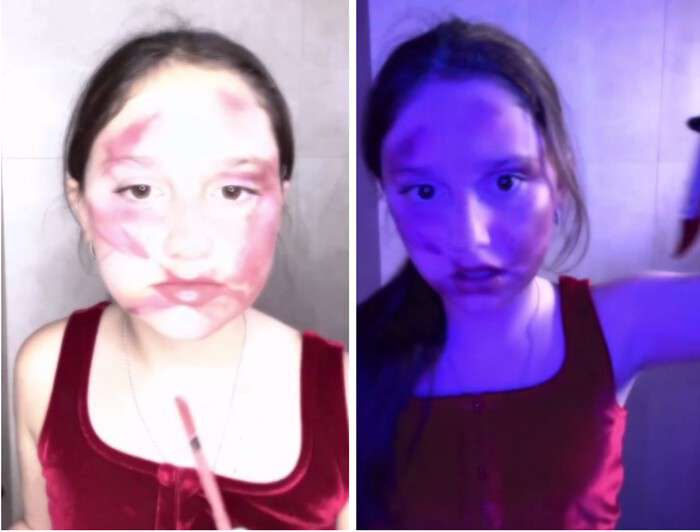 Сегодня звездная наследница опубликовала несколько устрашающих видео. По всей видимости, Мию на создание мини-ужастиков вдохновил предстоящий Хэллоуин. На одном ролике Прилучная предстала с окровавленным ножом в руке. Девочка изобразила шок и испуг, увидев у себя холодное оружие, и театрально упала в обморок. На другом видео Мия разукрасила себе лицо блеском для губ.